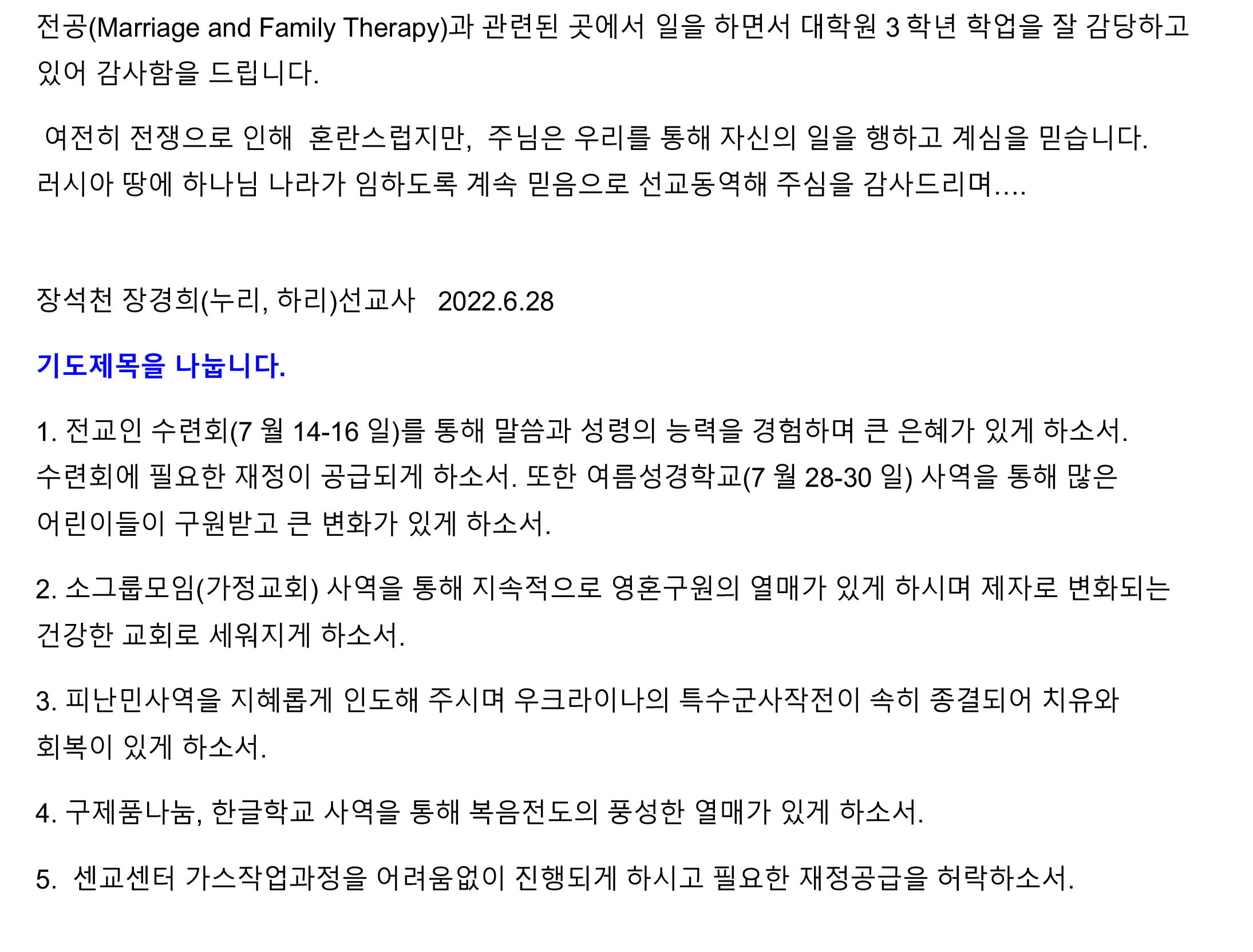 샬롬 장애인선교회 – 박모세 선교사 9월 선교편지