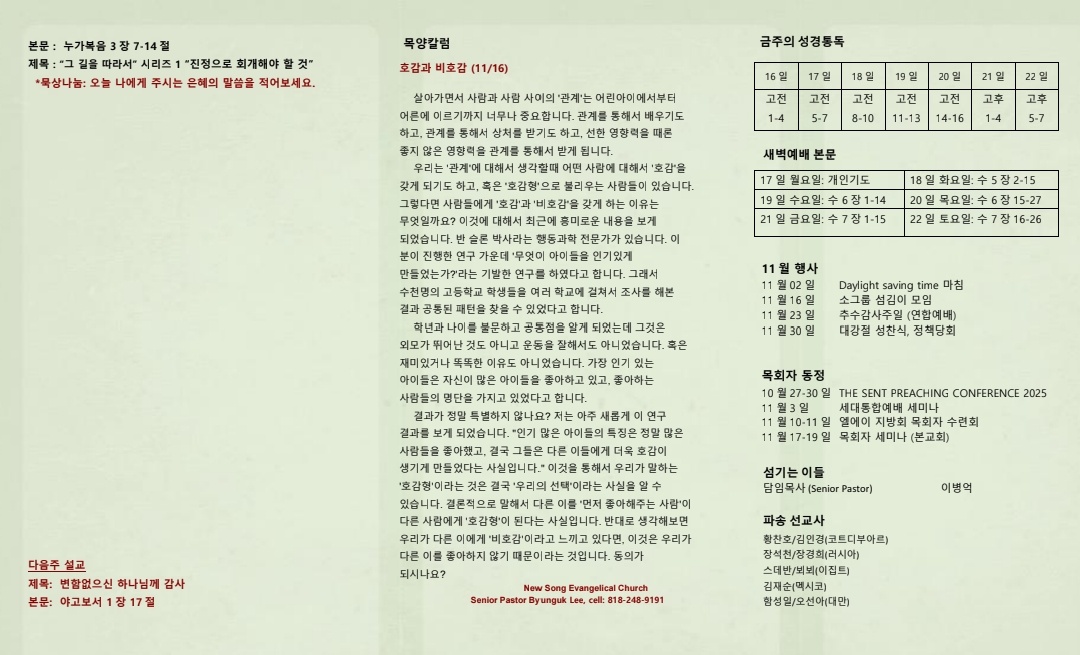 11월 16일 2025년 주보 보기